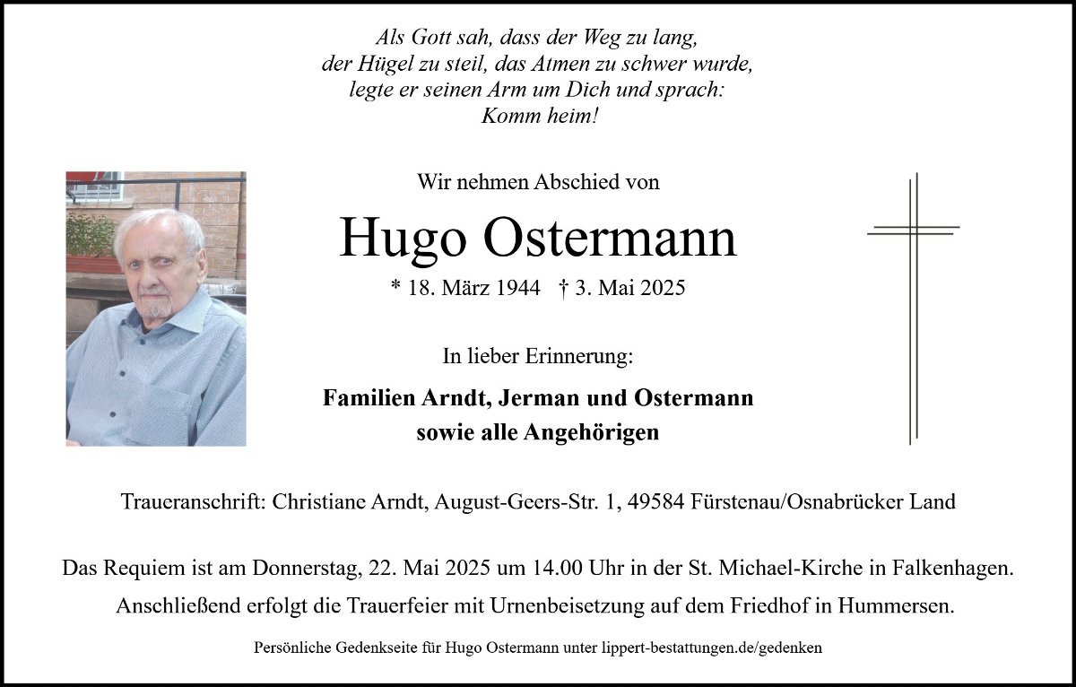 Hugo Ostermanngestorben am 3. Mai 2025