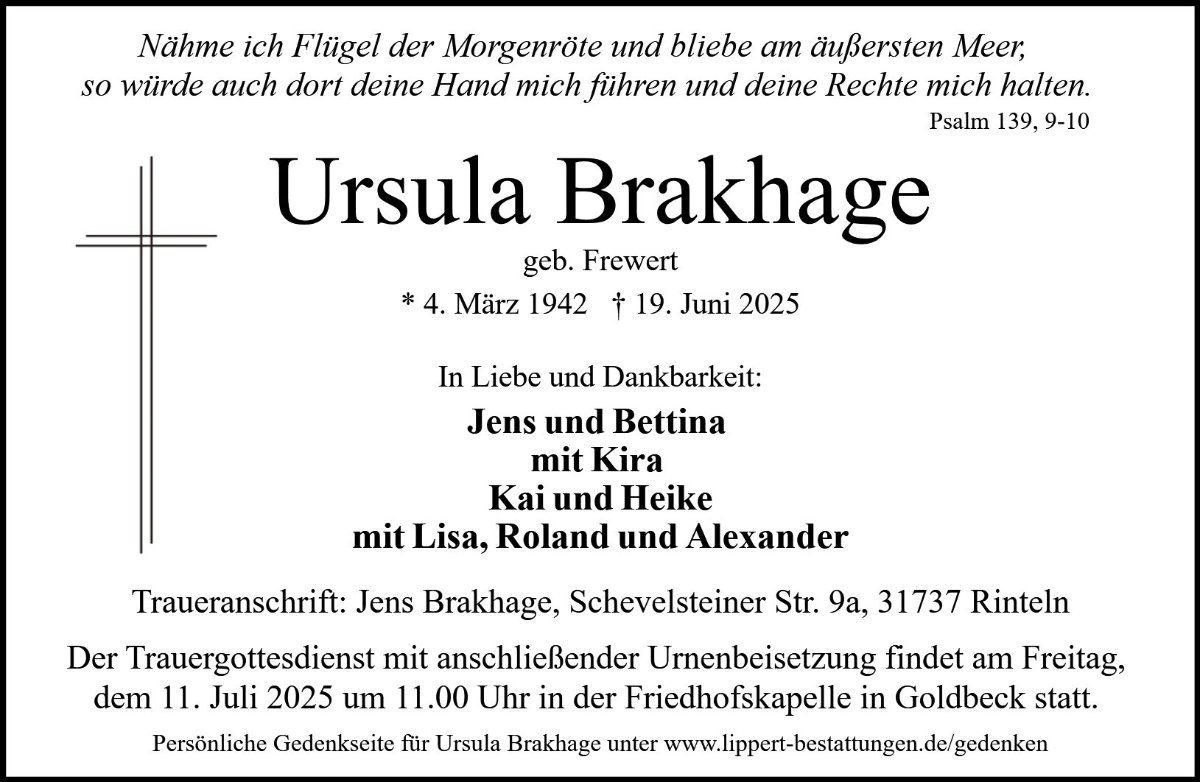 Ursula Brakhagegestorben am 19. Juni 2025